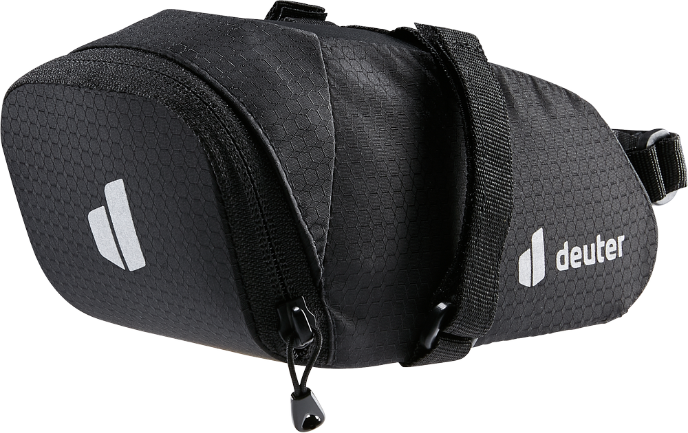 Deuter Pouch - A lightweight bag with a zipper, perfect for storing keys and money. Attached to the seatpost under the saddle. Reflective prints. The bottom of the bag is made of a durable material that is easy to remove dirt.