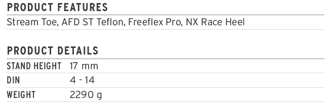 The new Freeflex ST 14 bindings offer even more precise control and enable maximum speed. The new Adaptive Suspension technology impresses with its functionality - it offers a spring-loaded skate construction, an adjustable pressure point with two mounting positions and a steel base between the plate and the binding for even more efficient power transmission.