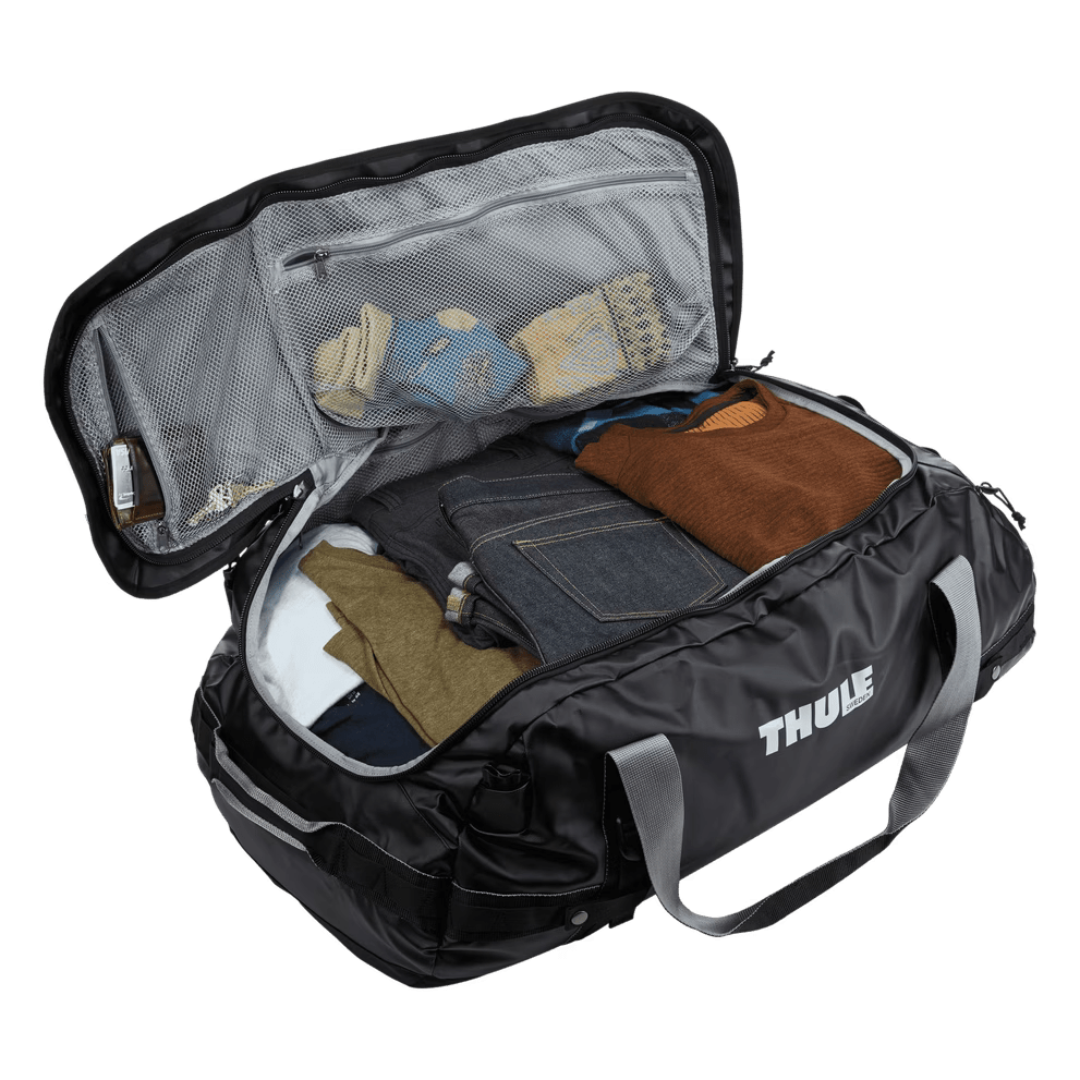Inner mesh pockets are perfect for organizing your belongings, and the wide opening makes packing your gear easy. The rugged, weather-resistant tarpaulin fabric and padded bottom protect your luggage in challenging conditions. Thule Chasm is a tough bag that can be thrown into the trunk or rooftop cargo box, perfect for car trips and adventures to remote corners.