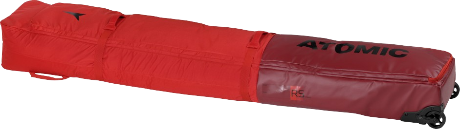 Atomic RS Ski Wheelie 4 Pairs is the perfect solution for racers and ski industry professionals traveling with multiple pairs of skis. It's highly durable and waterproof, with a tarpaulin lining that's easy to clean. The bag fits at least four pairs of skis – and up to six, depending on their width – with each pair safely protected so that one binding won’t damage another. Padded compression straps allow you to pack your skis tightly and securely. The bag features a front handle for pulling, additional side handles for two-person carrying, and large, silent 8.5 cm wheels that make maneuvering easy, even when fully loaded.