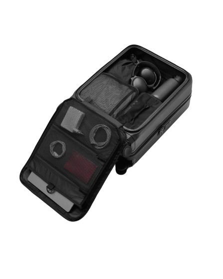 The unique front access face of this Ramverk suitcase was designed to simplify travel. Stash your most important travel items in the designated ‘essentials’ segment at the front of the bag to make security checks fly by. Engineered for 1-2 night getaways.