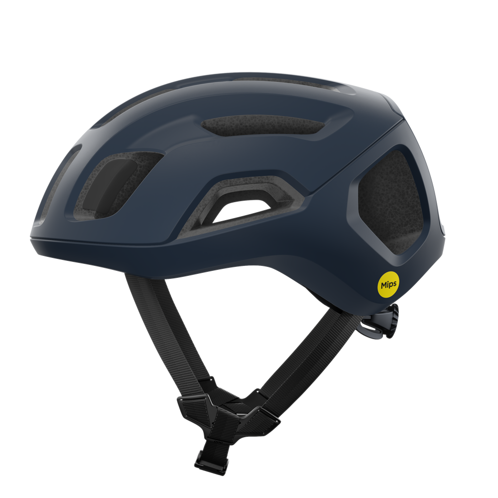 With precise ventilation ports and internal channels to control air intake and release at both low and high speeds, the helmet provides a supreme cooling effect over the whole head. Ideal for long rides in the mountains or hotter days in the saddle. The Ventral Air Mips works to enhance a rider's aerodynamic profile and minimize drag. Specific airflow zones enhance ventilation and cooling, while the aerodynamically optimized trailing edge reduces turbulence. The exceptionally lightweight road cycling helmet has been developed according to POC's Whole Helmet Concept™. It features a fully wrapped unibody shell construction and an EPS liner, delivering an ideal balance between weight and safety. The addition of Mips enhances rotational impact protection. Practical features include a lightweight size adjustment system that guarantees a personalized fit, and an eye garage for easy and secure storage of eyewear mid-ride.