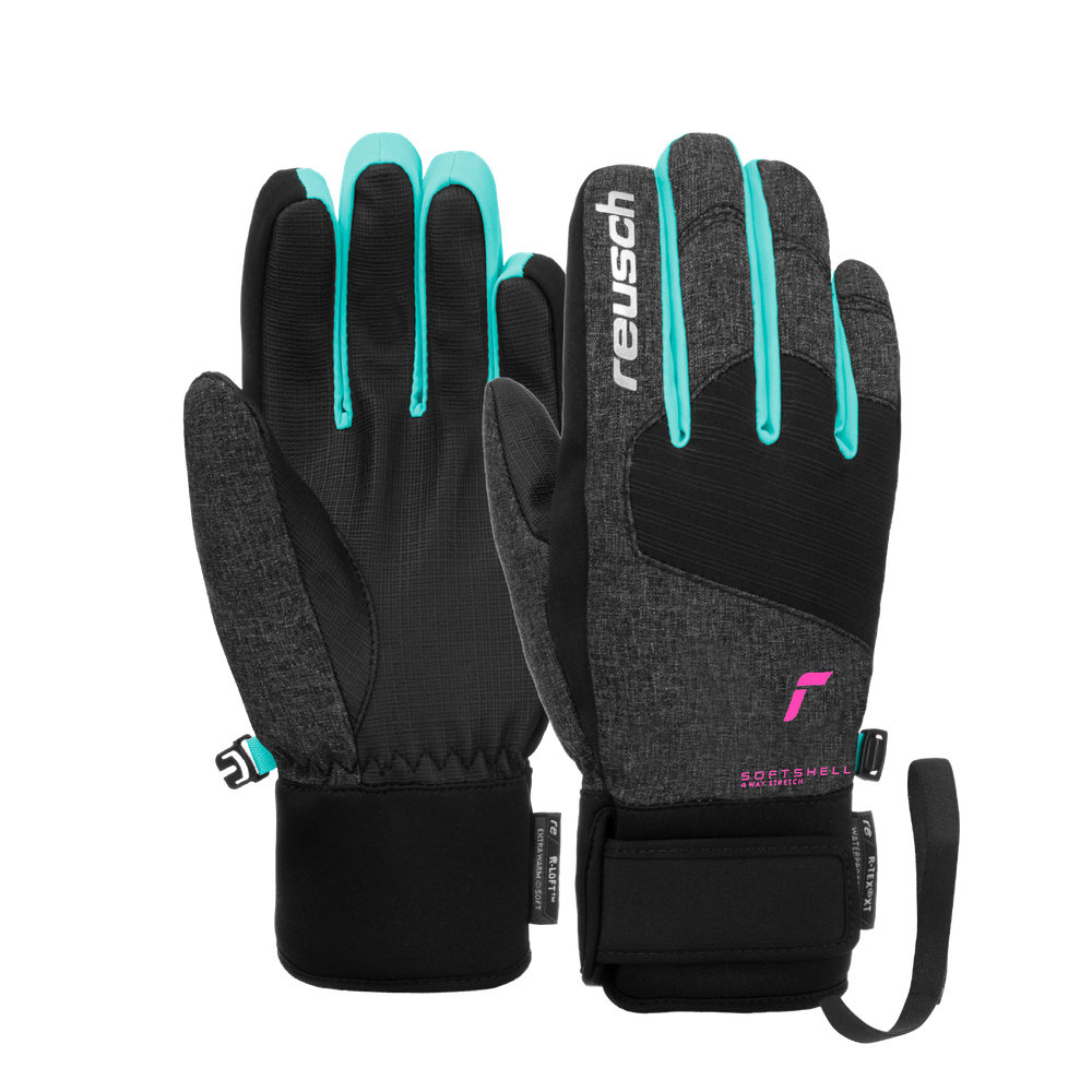 An extra warm, waterproof, and breathable junior glove in a colorful design. The softshell backhand makes the glove comfortable and light.